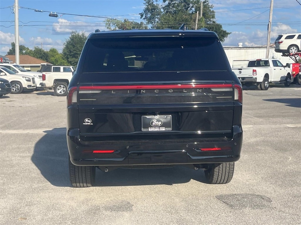 Black Metallic 2025 Lincoln Navigator Reserve 4WD 10-Speed Automatic 3.5L V6 4WD, Black Onyx Leather, 26mm Engine Radiator, 28 Speakers, 2nd Row Heated & Ventilated Dual Captain's Chair, 3rd row seats: split-bench, 4-Wheel Disc Brakes, ABS brakes, Adaptive suspension, Adjustable pedals, Air Conditioning, All-Weather Flr Liners w/Fr & Rr Carpet Floor Mats, Alloy wheels, AM/FM radio: SiriusXM with 360L, Apple CarPlay/Android Auto, Audio memory, Auto High-beam Headlights, Auto Htd & Ventilated Premium Lthr Captain's Chair, Auto Start-Stop Technology, Auto tilt-away steering wheel, Auto-dimming door mirrors, Auto-dimming Rear-View mirror, Auto-leveling suspension, Automatic temperature control, Black Accent Badge, Black Accent Interior Pack, Black Beltline Molding, Black Painted Roof Rails, Brake assist, Bumpers: body-color, Compass, Delay-off headlights, Driver door bin, Driver vanity mirror, Driver's Seat Mounted Armrest, Dual front impact airbags, Dual front side impact airbags, Electronic Stability Control, Emergency communication system: 911 Assist, Equipment Group 202A Reserve II, Exterior Parking Camera Rear, Four wheel independent suspension, Front anti-roll bar, Front Bucket Seats, Front Bumper Fascia, Front dual zone A/C, Front reading lights, Fully automatic headlights, Garage door transmitter, Heated door mirrors, Heated front seats, Heated rear seats, Heated steering wheel, Heavy-Duty Trailer Tow Package, HVAC memory, Illuminated entry, Jet Appearance Package, Leather steering wheel, Lincoln Connect, Lincoln Lit Star, Lincoln Premium Connectivity, Low tire pressure warning, Memory seat, Navigation system: Connected Navigation (1-year trial), Occupant sensing airbag, Outside temperature display, Overhead airbag, Overhead console, Panic alarm, Passenger door bin, Passenger seat mounted armrest, Passenger vanity mirror, Pedal memory, Power adjustable rear head restraints, Power door mirrors, Power driver seat, Power moonroof: Panoramic Vista Roof, Power passenger seat, Power steering, Power windows, Radio data system, Radio: Revel Ultima 3D AM/FM/HD Audio System, Rain sensing wipers, Rear air conditioning, Rear anti-roll bar, Rear audio controls, Rear reading lights, Rear window defroster, Rear window wiper, Reclining 3rd row seat, Remote keyless entry, Security system, SiriusXM w/360L, Speed control, Speed-sensing steering, Speed-Sensitive Wipers, Split folding rear seat, Spoiler, Steering wheel memory, Steering wheel mounted audio controls, Tachometer, Telescoping steering wheel, Tilt steering wheel, Traction control, Trailer Brake Controller, Trip computer, Turn signal indicator mirrors, Unique Lincoln Grille Pillar Black Surround, Variably intermittent wipers, Ventilated front seats, Wheels: 22" Dark Tarnished Aluminum, Wheels: 22" High-Gloss Ebony Aluminum, 4WD, Black Onyx Leather. Price includes: $1000 - Competitive Conquest Bonus Cash. Exp. 01/05/2026 $1000 - Wishlist Bonus Cash. Exp. 01/05/2026