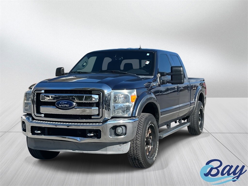 4WD, 10 Speakers, 18" Bright Machined Cast Alum. 6-Spoke Wheels, 18" Chrome Clad Cast Aluminum Wheels, 20" Chrome Clad Cast Aluminum Wheels, 4-Wheel Disc Brakes, ABS brakes, Adjustable pedals, Air Conditioning, Alloy wheels, AM/FM radio: SiriusXM, Auto-dimming Rear-View mirror, Automatic temperature control, Bodyside Molding, Brake assist, Bumpers: chrome, CD player, Chrome Package, Compass, Delay-off headlights, Driver door bin, Driver vanity mirror, Dual front impact airbags, Dual front side impact airbags, Electronic Stability Control, Engine Block Heater, Exterior Parking Camera Rear, Extra Heavy-Duty 200-Amp Alternator, Front anti-roll bar, Front Bucket Seats, Front Center Armrest, Front dual zone A/C, Front fog lights, Front reading lights, Fully automatic headlights, FX4 Off-Road Package, GVWR: 10,000 lb Payload Package, Heated door mirrors, Illuminated entry, Lariat Interior Package, Leather steering wheel, Low tire pressure warning, Navigation System w/HD & Satellite Broadcast, Order Code 608A, Outside temperature display, Overhead airbag, Overhead console, Panic alarm, Passenger door bin, Passenger vanity mirror, Power door mirrors, Power driver seat, Power passenger seat, Power steering, Power windows, Premium audio system: Sony, Premium Leather Seating Surfaces 40/Console/40, Radio data system, Radio: Premium Sony Audio w/Single CD, Rear Parking Sensors, Rear reading lights, Rear seat center armrest, Rear step bumper, Rear window defroster, Remote keyless entry, Remote Start System, Security system, SiriusXM Satellite Radio, Speed control, Split folding rear seat, Steering wheel mounted audio controls, Tachometer, Telescoping steering wheel, Tilt steering wheel, Traction control, Trip computer, Turn signal indicator mirrors, Variably intermittent wipers, 4WD. Blue 2013 Ford F-250SD Lariat 4WD TorqShift 6-Speed Automatic 6.2L V8 EFI SOHC 16V Flex Fuel