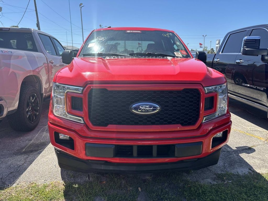 20" Machined-Aluminum Wheels, Body-Color Front & Rear Bumpers, Body-Color Surround w/Black Mesh Insert Grille, Box Side Decals, Driver/Passenger Seat Back Pocket, Fog Lamps, Illuminated Entry, Manual Driver/Passenger Lumbar, MyKey, Perimeter Alarm, Power Door Locks, Power Front & Rear Windows, Power Glass Sideview Mirrors w/Black Skull Caps, Power Tailgate Lock, Privacy Glass, Rear Window Defroster, STX Appearance Package, SYNC 3, Unique Sport Cloth 40/Console/40 Front-Seats, Wheels: 17" Silver Painted Aluminum, XL Power Equipment Group, XL Sport Appearance Package, 3.55 Axle Ratio, 4-Wheel Disc Brakes, 4.2" Productivity Screen in Instrument Cluster, 6 Speakers, ABS brakes, Air Conditioning, AM/FM radio, Brake assist, Class IV Trailer Hitch Receiver, Cloth 40/20/40 Front Seat, Compass, Cruise Control, Delay-off headlights, Driver door bin, Dual front impact airbags, Dual front side impact airbags, Electronic Stability Control, Equipment Group 101A Mid, Exterior Parking Camera Rear, Front anti-roll bar, Front Center Armrest, Front wheel independent suspension, Fully automatic headlights, Low tire pressure warning, Occupant sensing airbag, Outside temperature display, Overhead airbag, Passenger door bin, Passenger vanity mirror, Power steering, Radio: AM/FM Stereo w/6 Speakers, Radio: AM/FM Stereo/Single-CD Player, Rear step bumper, Rear Window Fixed Privacy Glass, Speed-sensing steering, Split folding rear seat, SYNC, Tachometer, Telescoping steering wheel, Tilt steering wheel, Traction control, Variably intermittent wipers, Voltmeter, Wheels: 17" Silver Steel, 20" Machined-Aluminum Wheels, Body-Color Front & Rear Bumpers, Body-Color Surround w/Black Mesh Insert Grille, Box Side Decals, Driver/Passenger Seat Back Pocket, Fog Lamps, Illuminated Entry, Manual Driver/Passenger Lumbar, MyKey, Perimeter Alarm, Power Door Locks, Power Front & Rear Windows, Power Glass Sideview Mirrors w/Black Skull Caps, Power Tailgate Lock, Privacy Glass, Rear Window Defroster, STX Appearance Package, SYNC 3, Unique Sport Cloth 40/Console/40 Front-Seats, Wheels: 17" Silver Painted Aluminum, XL Power Equipment Group, XL Sport Appearance Package. Race Red 2018 Ford F-150 XL RWD 10-Speed Automatic 2.7L V6 EcoBoost