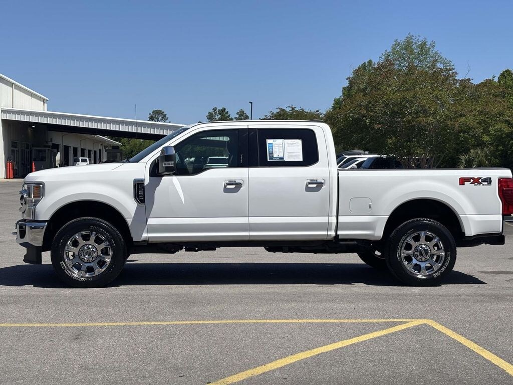 4WD, 6" Angular Chrome Step Bars, Ambient Lighting - Fixed Color, Body-Color Door Handles w/Chrome Insert, Chrome Exhaust Tip, Chrome Package, Easy Entry®/Exit Memory Driver's Seat Feature, FX4 Off-Road Package, Hill Descent Control, Intelligent Access w/Push-Button Start, Lariat Ultimate Package, LED Box Lighting, Memory Power-Adjustable Pedals, Off-Road Specifically Tuned Shock Absorbers, Order Code 608A, Power Heated/Ventilated Driver Seat w/Memory, Power Heated/Ventilated Passenger Seat, Power Telescoping/Tilt Steering Wheel/Column, PowerScope Trailer Tow Mirrors w/Heat, PowerScope Trailer Tow Mirrors w/Memory, Remote Start System, Remote Tailgate Release, Tailgate Step & Handle, Twin Panel Power Moonroof, Unique Chrome Mirror Caps, Unique FX4 Off-Road Box Decal, Voice-Activated Navigation, Wheels: 18" Chrome PVD Aluminum, 10 Speakers, 110V/400W Outlet, 4-Wheel Disc Brakes, 6" Angular Chrome Step Bar, ABS brakes, Adaptive Cruise Control & Collision Warning, Adjustable pedals, Air Conditioning, Alloy wheels, AM/FM radio: SiriusXM, Auto High-beam Headlights, Auto-dimming Rear-View mirror, Automatic temperature control, Brake assist, Bumpers: chrome, Compass, Delay-off headlights, Driver door bin, Driver vanity mirror, Dual front impact airbags, Dual front side impact airbags, Electronic Stability Control, Emergency communication system: SYNC 3 911 Assist, Exterior Parking Camera Rear, Flow-Through Console, Front & Rear Wheel Well Liners (Pre-Installed), Front anti-roll bar, Front Bucket Seats, Front Center Armrest, Front dual zone A/C, Front fog lights, Front Leather Seating Surfaces 40/Console/40, Front reading lights, Fully automatic headlights, GVWR: 10,000 lb Payload Package, Heated door mirrors, Illuminated entry, Leather steering wheel, Low tire pressure warning, Outside temperature display, Overhead airbag, Overhead console, Panic alarm, Passenger door bin, Passenger vanity mirror, Power door mirrors, Power driver seat, Power passenger seat, Power steering, Power windows, Quad Beam LED Headlamps & LED Taillamps, Radio data system, Radio: B&O System by Bang & Olufsen, Rear Parking Sensors, Rear reading lights, Rear seat center armrest, Rear step bumper, Rear window defroster, Remote keyless entry, Security system, SiriusXM Radio, Speed control, Split folding rear seat, Steering wheel mounted audio controls, SYNC 3 Communications & Entertainment System, Tachometer, Telescoping steering wheel, Tilt steering wheel, Traction control, Trip computer, Turn signal indicator mirrors, Universal Garage Door Opener (UGDO), Upfitter Switches (6), Variably intermittent wipers, Wheels: 18" Bright Machined Cast Aluminum, Wheels: 20" Chrome PVD Aluminum, 4WD, 6" Angular Chrome Step Bars, Ambient Lighting - Fixed Color, Body-Color Door Handles w/Chrome Insert, Chrome Exhaust Tip, Chrome Package, Easy Entry®/Exit Memory Driver's Seat Feature, FX4 Off-Road Package, Hill Descent Control, Intelligent Access w/Push-Button Start, Lariat Ultimate Package, LED Box Lighting, Memory Power-Adjustable Pedals, Off-Road Specifically Tuned Shock Absorbers, Order Code 608A, Power Heated/Ventilated Driver Seat w/Memory, Power Heated/Ventilated Passenger Seat, Power Telescoping/Tilt Steering Wheel/Column, PowerScope Trailer Tow Mirrors w/Heat, PowerScope Trailer Tow Mirrors w/Memory, Remote Start System, Remote Tailgate Release, Tailgate Step & Handle, Twin Panel Power Moonroof, Unique Chrome Mirror Caps, Unique FX4 Off-Road Box Decal, Voice-Activated Navigation, Wheels: 18" Chrome PVD Aluminum. White Metallic 2021 Ford F-250SD Lariat Ultimate 4WD 10-Speed Automatic 7.3L V8 PFI SOHC 16V Federal 385hp