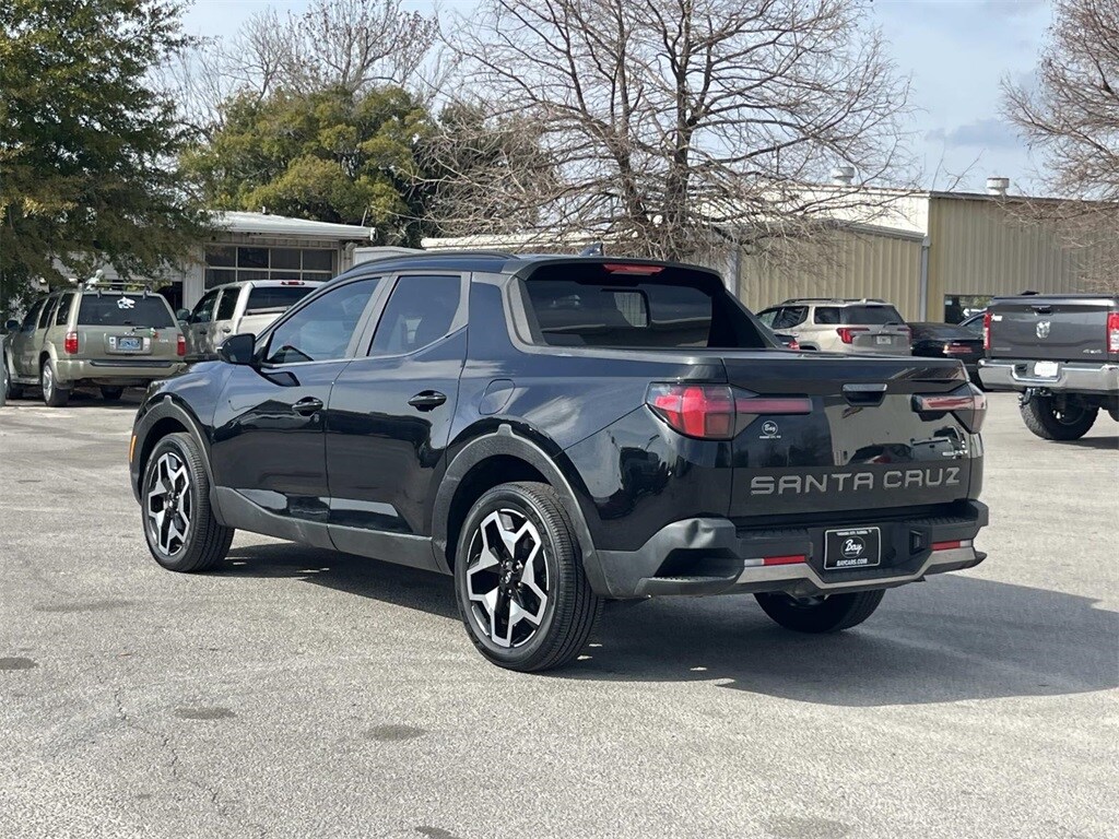 Exterior Parking Camera Rear, Heated front seats, Leather Seat Trim, Navigation System, Power moonroof, 4-Wheel Disc Brakes, 4.846 Axle Ratio, 8 Speakers, ABS brakes, Air Conditioning, Alloy wheels, AM/FM radio: SiriusXM, Apple CarPlay & Android Auto, Auto High-beam Headlights, Auto-dimming Rear-View mirror, Auto-leveling suspension, Automatic temperature control, Brake assist, Bumpers: body-color, Carpeted Floor Mats, Delay-off headlights, Driver door bin, Driver vanity mirror, Dual front impact airbags, Dual front side impact airbags, Electronic Stability Control, Emergency communication system: Blue Link Connected Car Service (3-year complimentary subscription), Envelop Cargo Net, Four wheel independent suspension, Front anti-roll bar, Front Bucket Seats, Front Center Armrest, Front dual zone A/C, Front reading lights, Fully automatic headlights, Garage door transmitter: HomeLink, Heated & Ventilated Front Bucket Seats, Heated door mirrors, Heated steering wheel, Illuminated entry, Leather Shift Knob, Low tire pressure warning, Occupant sensing airbag, Option Group 01, Outside temperature display, Overhead airbag, Overhead console, Panic alarm, Passenger door bin, Passenger vanity mirror, Power door mirrors, Power driver seat, Power steering, Power windows, Radio data system, Radio: AM/FM w/Bose Premium Audio System, Rain sensing wipers, Rear anti-roll bar, Rear step bumper, Rear window defroster, Remote keyless entry, Security system, Speed control, Speed-sensing steering, Split folding rear seat, Spoiler, Steering wheel mounted audio controls, Tachometer, Telescoping steering wheel, Tilt steering wheel, Traction control, Trip computer, Turn signal indicator mirrors, Variably intermittent wipers, Ventilated front seats, Wheels: 20" x 7.5J Alloy, Exterior Parking Camera Rear, Heated front seats, Leather Seat Trim, Navigation System, Power moonroof. Phantom Black 2022 Hyundai Santa Cruz Limited AWD Shiftronic 2.5L I4