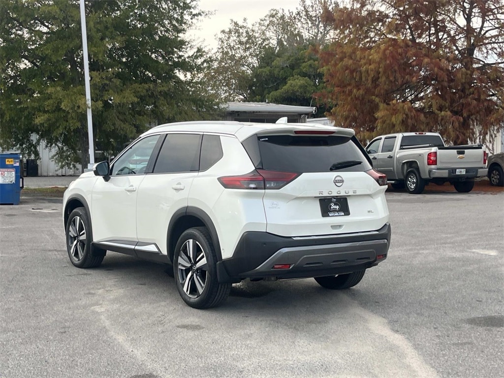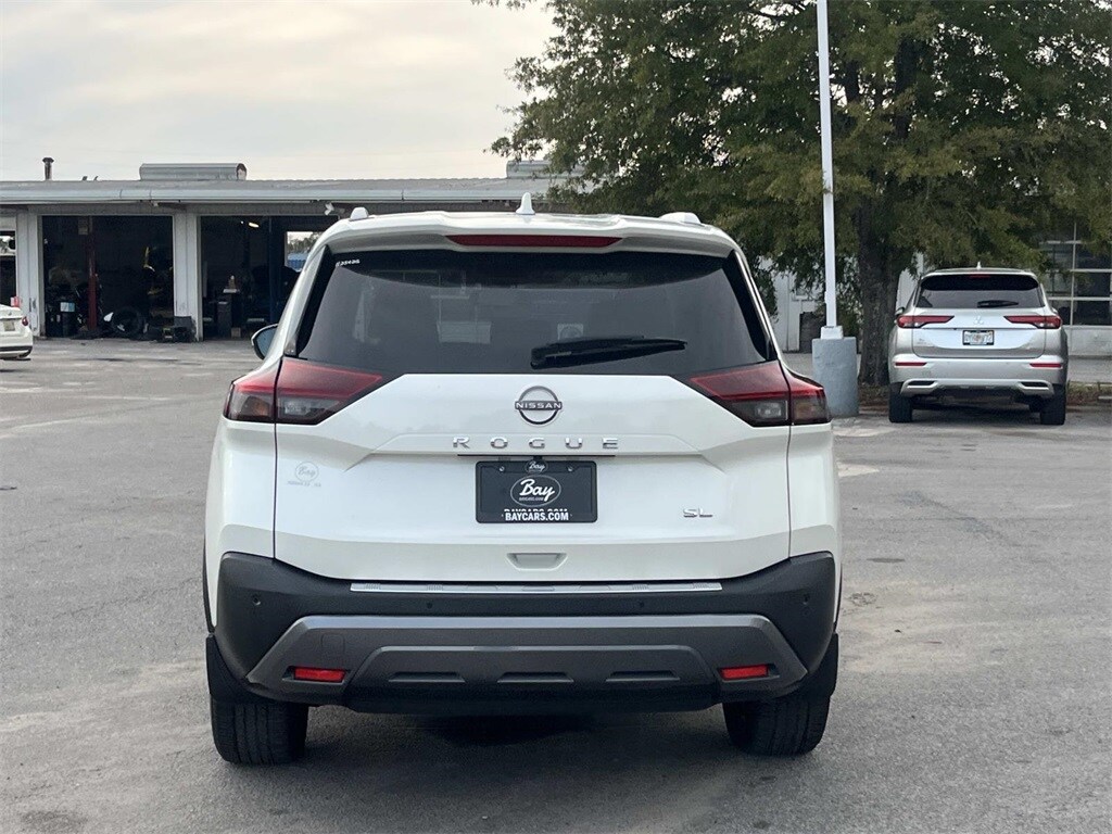 19" Aluminum Alloy Wheels, Bose Premium Audio System, Front dual zone A/C, Front, Side & Rear Sonar, Heated Front Bucket Seats, Leather-Appointed Seat Trim, Motion Activated Power Liftgate, Power Liftgate, Power moonroof, Power passenger seat, ProPILOT Assist w/Navi-link, Radio: AM/FM NissanConnect w/Navigation, Rear Door Sunshades, Rear Parking Sensors, SL Premium Package, Traffic Sign Recognition, Tri-Zone HVAC, 4-Wheel Disc Brakes, 5.604 Axle Ratio, 6 Speakers, ABS brakes, Air Conditioning, Alloy wheels, AM/FM Radio, AM/FM radio: SiriusXM, Auto High-beam Headlights, Auto-dimming Rear-View mirror, Automatic temperature control, Black Splash Guards (Set of 4), Brake assist, Bumpers: body-color, Chrome Rear Bumper Protector, Delay-off headlights, Driver door bin, Driver vanity mirror, Dual front impact airbags, Dual front side impact airbags, Electronic Stability Control, Emergency communication system: NissanConnect Services, Four wheel independent suspension, Front anti-roll bar, Front Bucket Seats, Front Center Armrest, Front reading lights, Fully automatic headlights, Heated door mirrors, Heated front seats, Heated steering wheel, Illuminated entry, Knee airbag, Leather steering wheel, Low tire pressure warning, Memory seat, NissanConnect featuring Apple CarPlay and Android Auto, Occupant sensing airbag, Outside temperature display, Overhead airbag, Overhead console, Panic alarm, Passenger door bin, Passenger vanity mirror, Power door mirrors, Power driver seat, Power steering, Power windows, Radio data system, Rear anti-roll bar, Rear reading lights, Rear seat center armrest, Rear side impact airbag, Rear window defroster, Rear window wiper, Remote keyless entry, Security system, Speed control, Speed-Sensitive Wipers, Split folding rear seat, Spoiler, Steering wheel mounted audio controls, Tachometer, Telescoping steering wheel, Tilt steering wheel, Traction control, Trip computer, Turn signal indicator mirrors, Variably intermittent wipers, 19" Aluminum Alloy Wheels, Bose Premium Audio System, Front dual zone A/C, Front, Side & Rear Sonar, Heated Front Bucket Seats, Leather-Appointed Seat Trim, Motion Activated Power Liftgate, Power Liftgate, Power moonroof, Power passenger seat, ProPILOT Assist w/Navi-link, Radio: AM/FM NissanConnect w/Navigation, Rear Door Sunshades, Rear Parking Sensors, SL Premium Package, Traffic Sign Recognition, Tri-Zone HVAC. Pearl White Tricoat 2023 Nissan Rogue SL Leather, Moon Roof FWD CVT with Xtronic 1.5L I3 Turbocharged DOHC 12V LEV3-ULEV50 201hp