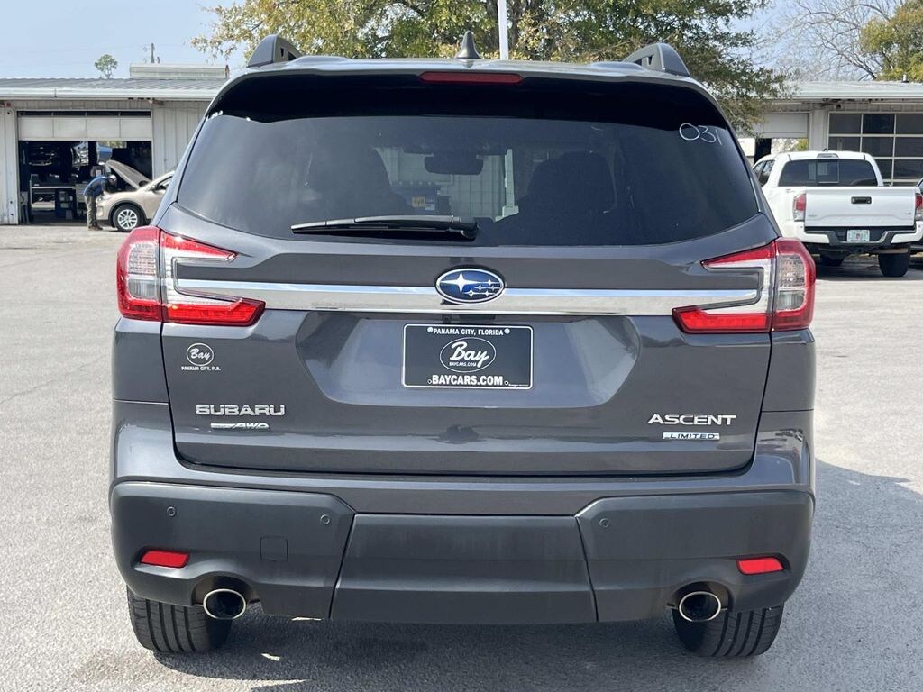 3rd row seats: bench, Exterior Parking Camera Rear, Heated Front Bucket Seats, Heated front seats, Heated rear seats, Memory seat, Power driver seat, Power Liftgate, Rear air conditioning, Wheels: 20" x 7.5 J Dk Gray Alloy w/Machine Finish, 4-Wheel Disc Brakes, 6 Speakers, ABS brakes, Air Conditioning, Alloy wheels, AM/FM radio: SiriusXM, Auto High-beam Headlights, Auto-dimming Rear-View mirror, Automatic temperature control, Axle Ratio: 4.44, Brake assist, Bumpers: body-color, Cargo Cover, Delay-off headlights, Driver door bin, Driver vanity mirror, Dual front impact airbags, Dual front side impact airbags, Electronic Stability Control, Emergency communication system: STARLINK Safety and Security (Subscription Required), Four wheel independent suspension, Front anti-roll bar, Front Bucket Seats, Front Center Armrest, Front dual zone A/C, Front fog lights, Front reading lights, Fully automatic headlights, Garage door transmitter: HomeLink, Heated door mirrors, Heated steering wheel, HVAC memory, Illuminated entry, Knee airbag, Leather Shift Knob, Leather steering wheel, Low tire pressure warning, Occupant sensing airbag, Outside temperature display, Overhead airbag, Overhead console, Panic alarm, Passenger door bin, Passenger vanity mirror, Perforated Leather-Trimmed Upholstery, Power door mirrors, Power passenger seat, Power steering, Power windows, Radio data system, Radio: Subaru STARLINK 11.6" Multimedia Plus System, Rear anti-roll bar, Rear reading lights, Rear window defroster, Rear window wiper, Reclining 3rd row seat, Remote keyless entry, Security system, Speed control, Speed-sensing steering, Split folding rear seat, Spoiler, Standard Model, STARLINK/Apple CarPlay/Android Auto, Steering wheel mounted audio controls, Tachometer, Telescoping steering wheel, Tilt steering wheel, Traction control, Trip computer, Turn signal indicator mirrors, Variably intermittent wipers, 3rd row seats: bench, Exterior Parking Camera Rear, Heated Front Bucket Seats, Heated front seats, Heated rear seats, Memory seat, Power driver seat, Power Liftgate, Rear air conditioning, Wheels: 20" x 7.5 J Dk Gray Alloy w/Machine Finish. Magnetite Gray Metallic 2023 Subaru Ascent Limited AWD Lineartronic CVT 2.4L 4-Cylinder DOHC 16V