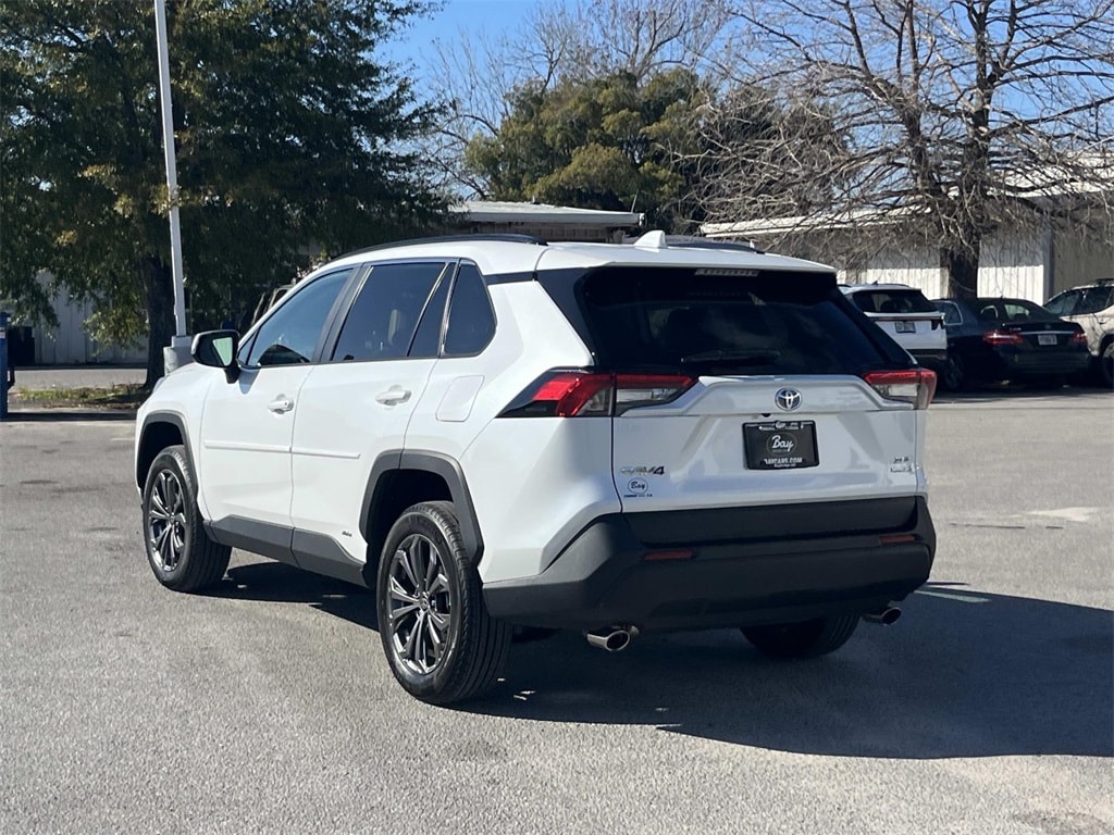 2.5L 4-Cylinder, Power Liftgate, Power moonroof, 3 Spoke Leather Steering Wheel, 4-Wheel Disc Brakes, 6 Speakers, ABS brakes, Air Conditioning, Alloy wheels, AM/FM radio: SiriusXM, Auto High-beam Headlights, Automatic temperature control, Axle Ratio: TBD, Brake assist, Bumpers: body-color, Delay-off headlights, Driver door bin, Driver vanity mirror, Dual front impact airbags, Dual front side impact airbags, Electronic Stability Control, Emergency communication system: Safety Connect (1-year trial), Exterior Parking Camera Rear, Four wheel independent suspension, Front anti-roll bar, Front Bucket Seats, Front Center Armrest, Front Door Smart Key System w/Push Button Start, Front dual zone A/C, Front fog lights, Front reading lights, Front Sport Seats, Fully automatic headlights, Heated door mirrors, Illuminated entry, Knee airbag, Lane Departure Warning System, Leather Shift Knob, Low tire pressure warning, Occupant sensing airbag, Outside temperature display, Overhead airbag, Overhead console, Panic alarm, Passenger door bin, Passenger vanity mirror, Power door mirrors, Power driver seat, Power steering, Power windows, Radio data system, Radio: AM/FM/XM Audio System, Rear anti-roll bar, Rear seat center armrest, Rear window defroster, Rear window wiper, Remote keyless entry, SofTex Seat Trim, Speed control, Speed-sensing steering, Split folding rear seat, Spoiler, Steering wheel mounted audio controls, Telescoping steering wheel, Tilt & Slide Moon Roof, Tilt steering wheel, Traction control, Trip computer, Turn signal indicator mirrors, Variably intermittent wipers, Wheels: 18" x 7.0J 5-Spoke Sport Alloy, 2.5L 4-Cylinder, Power Liftgate, Power moonroof. White 2023 Toyota RAV4 Hybrid XLE Premium AWD eCVT 2.5L 4-Cylinder