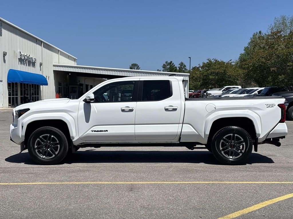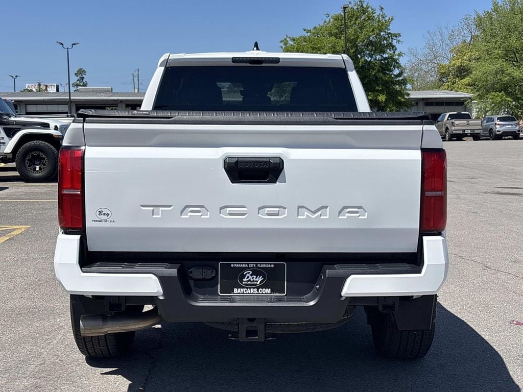 TRD Sport Package, Wheels: 18" TRD Sport Alloy, 3.583 Axle Ratio, 4-Wheel Disc Brakes, 6 Speakers, ABS brakes, Air Conditioning, Alloy wheels, AM/FM radio: SiriusXM, Anti-whiplash front head restraints, Apple CarPlay/Android Auto, Auto High-beam Headlights, Auto-dimming Rear-View mirror, Automatic temperature control, Brake assist, Bumpers: body-color, Driver door bin, Driver vanity mirror, Dual front impact airbags, Dual front side impact airbags, Electronic Stability Control, Emergency communication system: Safety Connect (1-year trial), Exterior Parking Camera Rear, Fabric Seat Trim (FE), Four wheel independent suspension, Front anti-roll bar, Front Bucket Seats, Front Center Armrest, Front fog lights, Front reading lights, Fully automatic headlights, Heated door mirrors, Illuminated entry, Knee airbag, Leather Shift Knob, Leather steering wheel, Long Bed, Low tire pressure warning, Occupant sensing airbag, Outside temperature display, Overhead airbag, Overhead console, Panic alarm, Passenger door bin, Passenger vanity mirror, Power door mirrors, Power steering, Power windows, Radio: 14" Toyota Audio Multimedia (EE), Radio: 8" Toyota Audio Multimedia, Rear step bumper, Rear window defroster, Remote keyless entry, Security system, Speed control, Speed-sensing steering, Split folding rear seat, Steering wheel mounted audio controls, Tachometer, Telescoping steering wheel, Tilt steering wheel, Traction control, Trip computer, Turn signal indicator mirrors, Variably intermittent wipers, TRD Sport Package, Wheels: 18" TRD Sport Alloy. Ice 2024 Toyota Tacoma TRD Sport RWD 8-Speed Automatic 2.4L 4-Cylinder